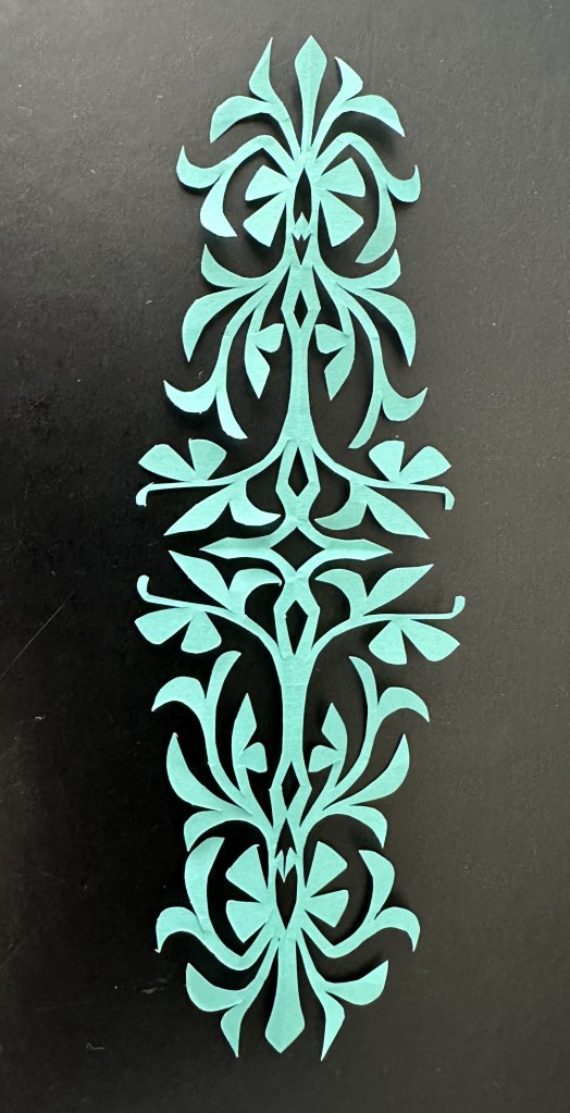 I used free-hand to cut both these designs using a pair of scissors. I plan to make couple greeting cards after both these designs are sufficiently ironed out and wrinkle free as they get pressed flat between the pages of a heavy book.